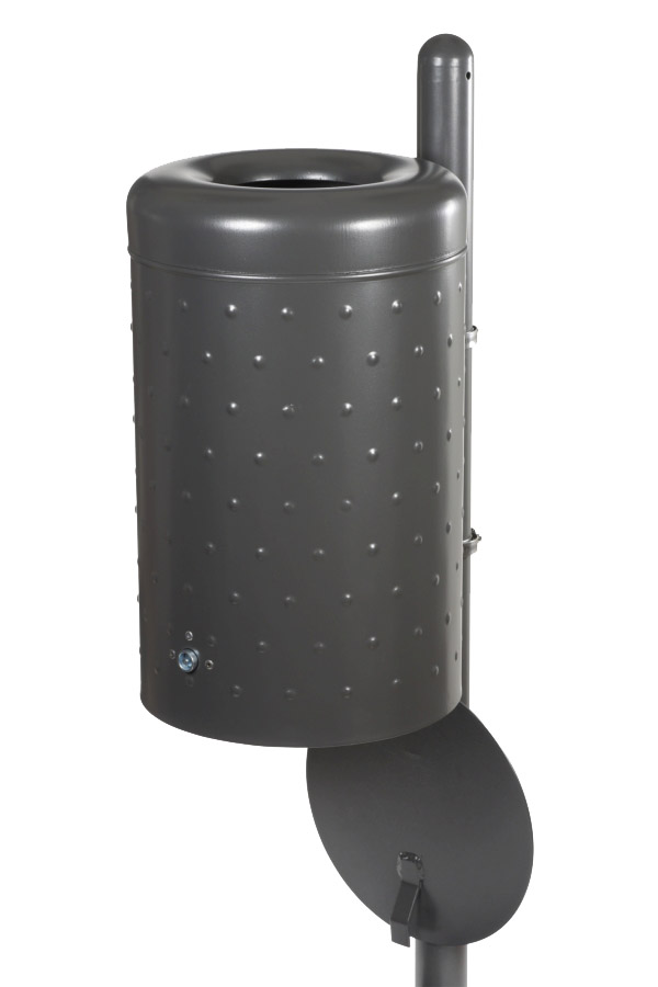 Rund-Abfallbehälter im Noppenblech-Design - hergestellt in Deutschland.