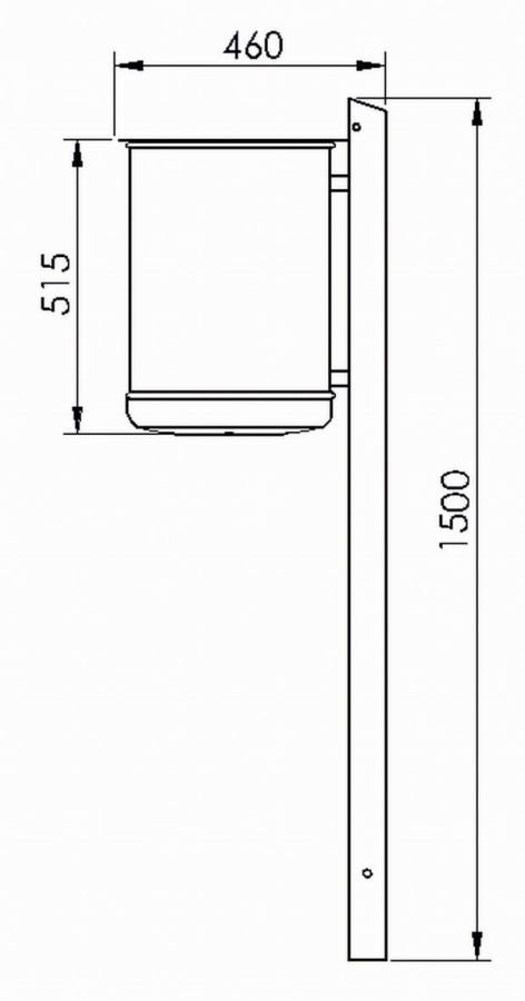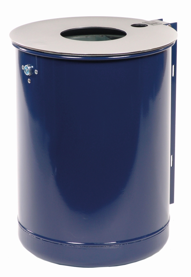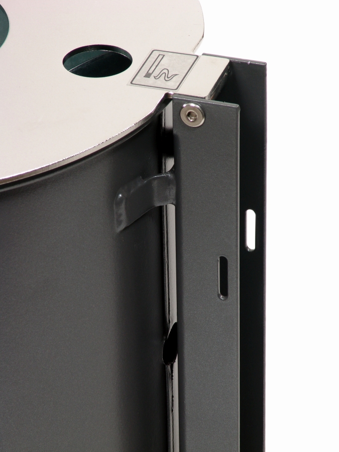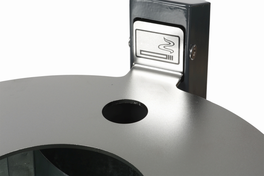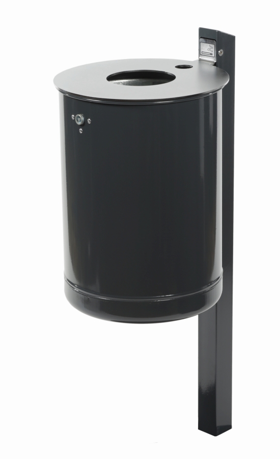 Abfallbehälter aus feuerverzinktem Stahlblech mit zusätzlicher Pulverbeschichtung und Deckelscheibe aus Edelstahl, sowie integriertem Ascher. Der Abfallbehälter ist entweder zur Pfostenmontage erhältlich und wird inkl. Quadratrohrpfosten, Innenbehälter, Dreikantschlüssel und Piktogramm-Aufkleber geliefert, oder zur Wand- / Pfostenmontage - mit angeschweißter Befestigungsschiene.