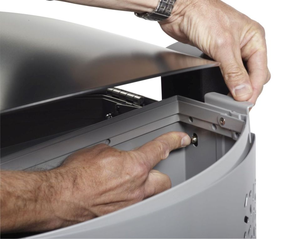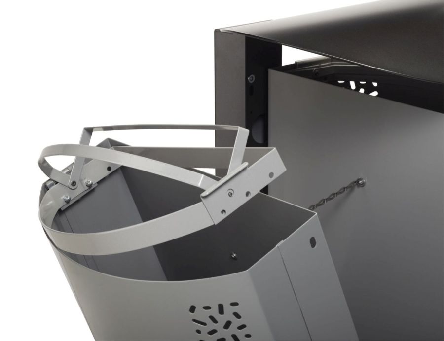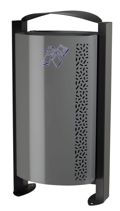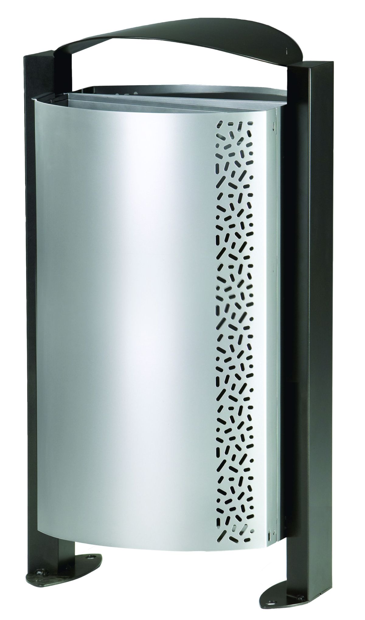 Abfallbehälter mit zwei Teilfächern für die Mülltrennung. Der Rahmen ist verzinkt, die Behälter zusätzlich pulverbeschichtet. Durch die mitgelieferten Aufkleber eignet sich der Abfallbehälter zur Mülltrennung. Die Verriegelung an der Innenseite des Behälters erfolgt ohne Schlüssel.