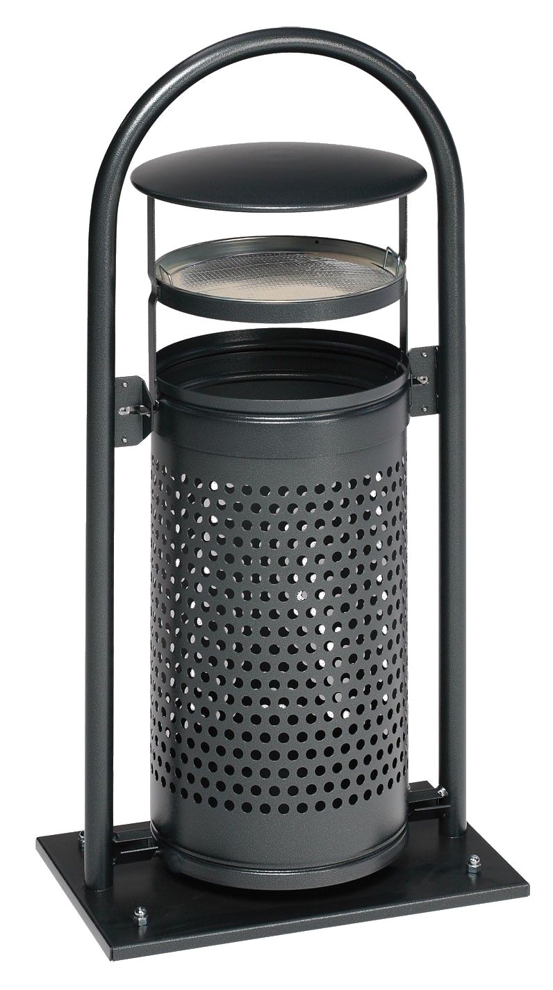 Abfallbehälter im Rohrbogenständer - mit Ascher. Das Kopfteil dient als... mehr